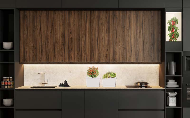 Skab et beroligende og imponerende grønt miljø på kontoret – i receptionen, mødelokalerne, kantinen eller andre fællesområder. Vores modulære løsninger med smart controller og energieffektive 18W fuld spektrum vækstlys er designet til at integrere sig perfekt i enhver virksomhed.