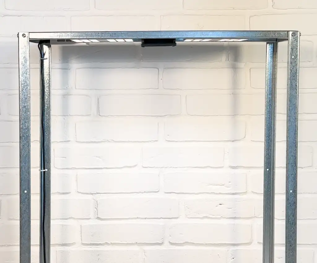 Saml reolen, og fastgør strømforsyningskablet til et af benene – i samme side som controlleren.