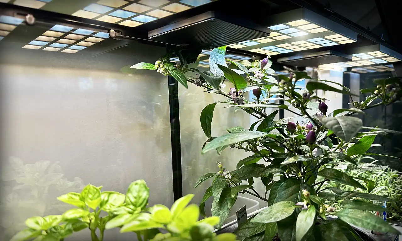 I modsætning til mange andre vækstlys, er vores 18W LED paneler designet til at være behagelige at have i åbne rum, hvor de skaber en rolig atmosfære sammen med det naturlige grønne skær fra dine planter. Yderligere får du minimal varmeudvikling og meget lavt strømforbrug – typisk 28–40W i alt.